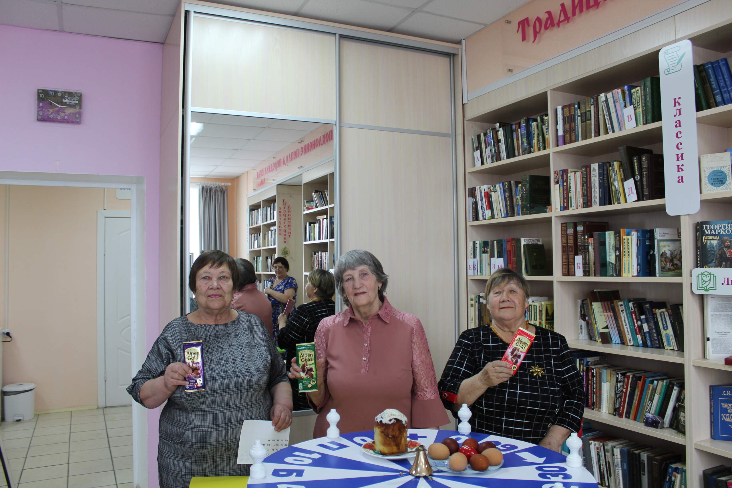 Пасха — самый светлый и добрый православный праздник. Это праздник надежды, мира и прощения. День Воскресения Христова, когда мы празднуем победу добра над злыми силами, над смертью. Связан этот праздник с чудом. В эти дни люди совершают добрые поступки, помогают людям, заботятся о животных и птицах, сажают деревья и цветы. Библиотекари модельной центральной библиотеки с клубом «Надежда» и клубом «Рябинушка» провели игру «Поле чудес» под названием «Пасха — это чудо». По традиции игра состояла из трех туров, в каждом из которых выступали по три игрока. Женщины с азартом вращали барабан и пытались отгадать загаданные слова. В первом туре речь шла о пасхальных блюдах. Во втором туре был вопрос: как назывались яйца, расписанные колечками? Третий тур был посвящен легенде о Марии Магдалине. В финале игроки и зрители отвечали на вопросы о народных промыслах, пасхальных приветствиях («Христос воскресе!») и традиционных забавах. В суперигре был задан каверзный вопрос: «Что принесли жены-мироносицы к тому месту, где был похоронен Иисус?». За участие и победы получили заслуженные призы.